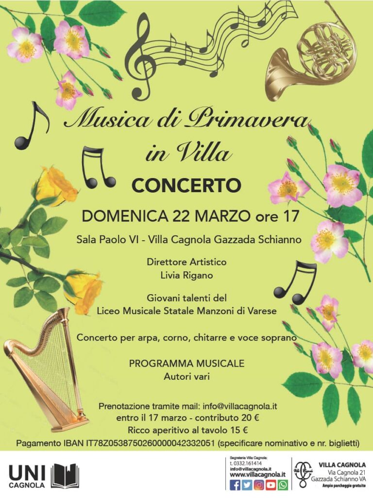 The concert will be held in the Sala Paolo VI at Villa Cagnola (Gazzada Schianno)