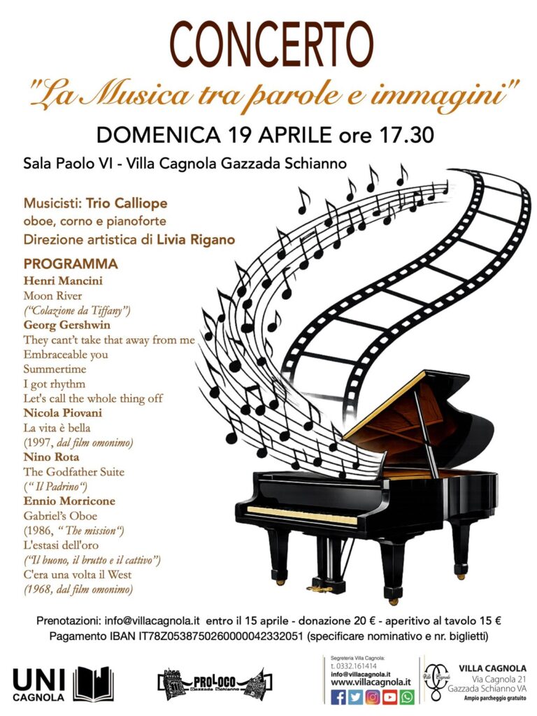 Il concerto si terrà presso la Sala Paolo VI di Villa Cagnola (Gazzada Schianno)