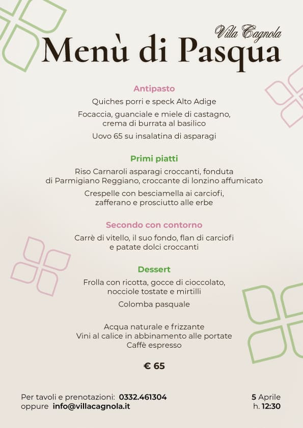 Pranzo di Pasqua 2026 in Villa Cagnola