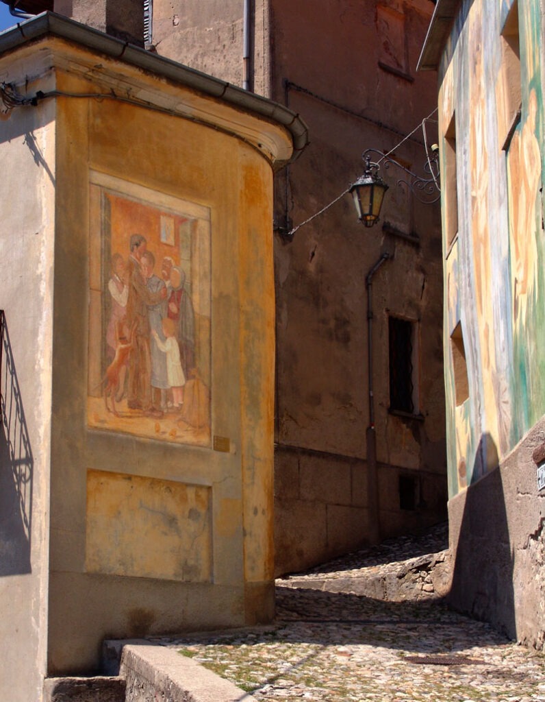 Arcumeggia è stato il primo borgo dipinto d’Italia e negli anni ha ospitato numerosi artisti che hanno lasciato la loro firma sulle facciate delle case.